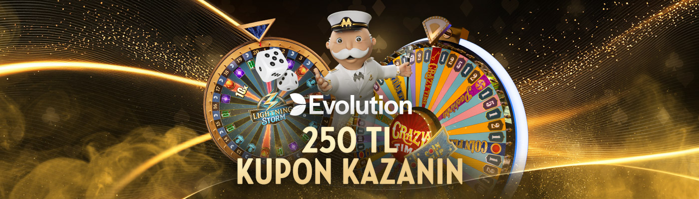 - Kampanya ödülü seçili Evolution canlı oyunlarında üç (3) gün boyunca geçerli 250 TL değerinde Kupon (Voucher) olup Kupon ile elde edilebilecek maksimum kazanç: 1.000 TL.